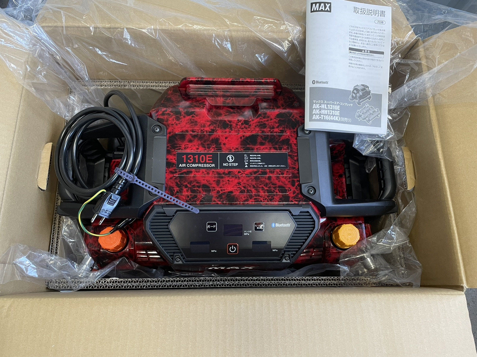 今回お持ち込み頂いた工具はマックスのスーパーエア・コンプレッサ AK-HL1310E【限定色】です。